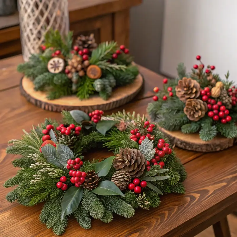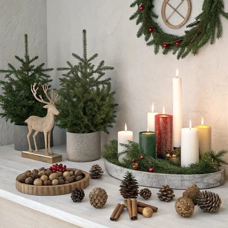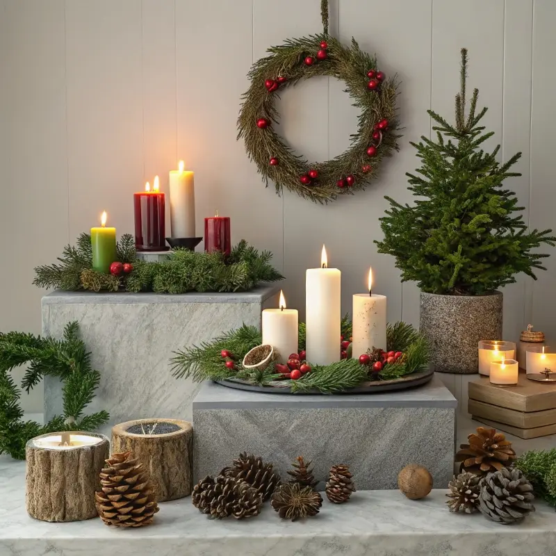 - Candles in seasonal colors (red, green, gold, white)