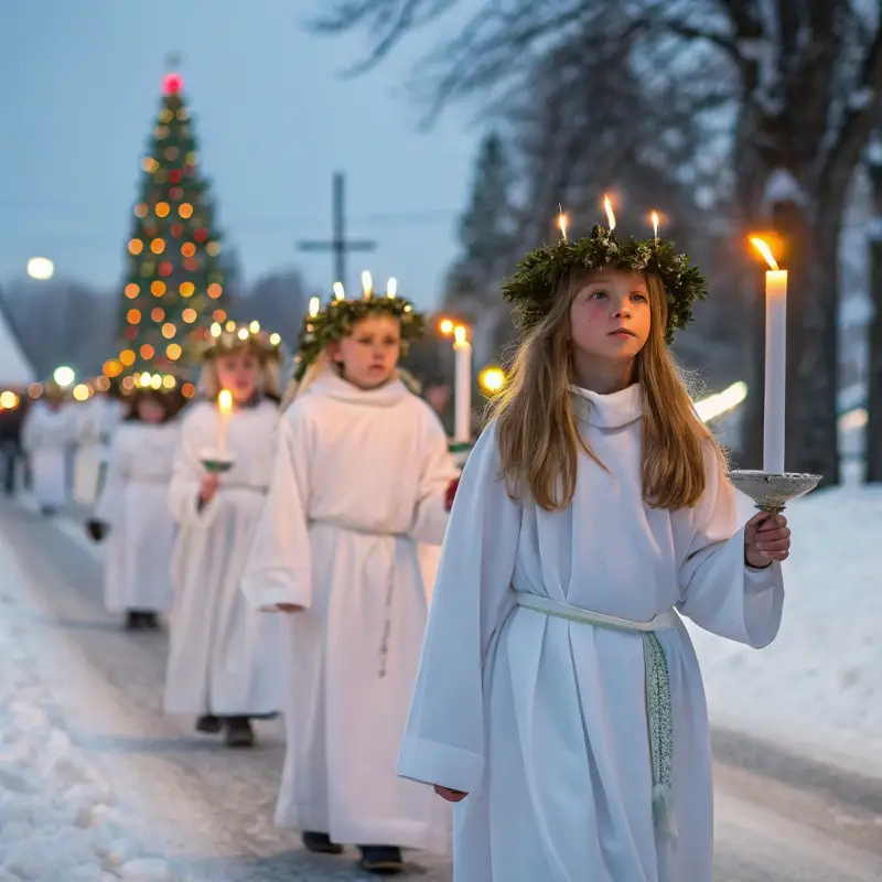 In Scandinavian countries, the celebration known as Jul (Yule) remains prominent, featuring the celebration of St. Lucia Day on December 13th. Young women wear white dresses with red sashes and crowns of candles, symbolizing light in darkness and helping to mark the beginning of the Yuletide season.